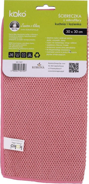 Praktická mikrovláknová utěrka KOKO o rozměru 30×30 cm je ideální pro každodenní úklid v kuchyni i koupelně. Bez šmouh a bez poškrábání čistí a leští vany, obklady, umyvadla i dřezy. Lze používat opakovaně, je šetrná k životnímu prostředí a díky mikrovláknu účinně čistí i bez čisticích prostředků. Snadná údržba praním v pračce.