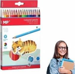 Praktická sada barevných pastelek MP s intenzivními barvami pro kreslení, vybarvování i školní projekty. V balení najdete 18 kusů pastelek s hladkým nanášením, které zajistí syté a rovnoměrné krytí bez drolení.