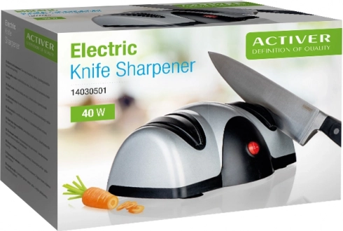 Udržujte své kuchyňské nože v perfektní kondici s elektrickou bruskou ACTIVER. Nabízí čtyři vodicí drážky pro různé tvary nožů, dva brusné kotouče pro hrubé i jemné broušení a protiskluzovou základnu pro bezpečný provoz. Kombinace wolframového a keramického kamene zajistí ostré a hladké ostří pro přesné krájení.