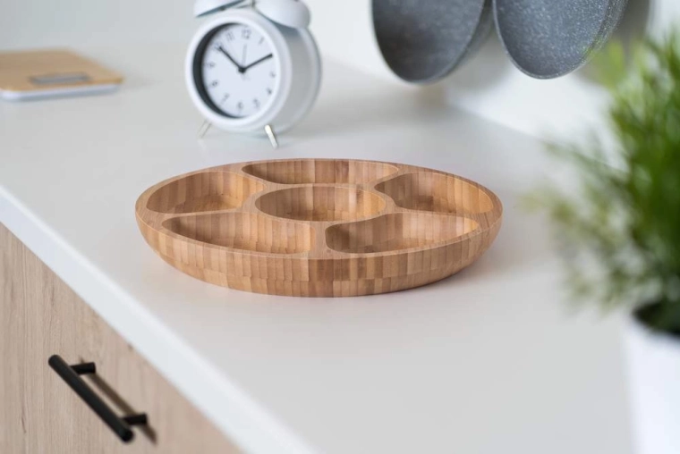 Více oddělených přihrádek udrží chutě i textury pěkně zvlášť – servírujte oříšky, sušené plody, sýry i dipy na jedné misce bez míchání.