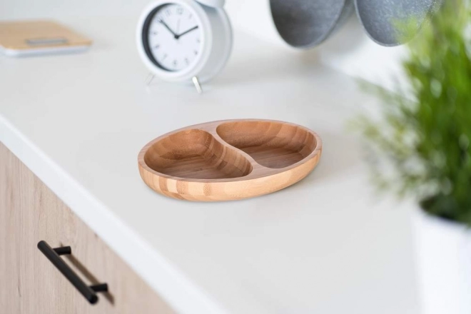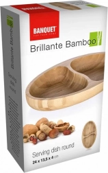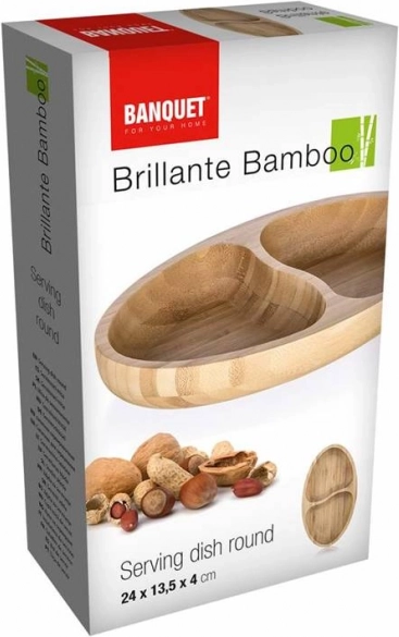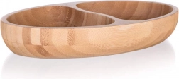 Stylová bambusová miska se dvěma přihrádkami je ideální pro servírování různých dobrot. Díky dvěma odděleným sekcím snadno naservírujete oříšky, olivy či ovoce na jednom místě. Přírodní bambus dodá stolování elegantní vzhled, je lehké, odolné a snadno se udržuje.