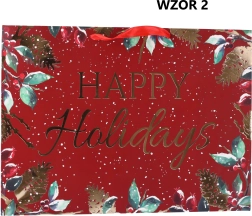 Udělejte radost elegantním balením během svátků. Tato vánoční dárková taška s nápisem Happy Holidays vyniká univerzální velikostí, svátečním vzhledem a praktickým zpracováním. Díky pevným uším se snadno přenáší a odolný materiál chrání obsah před protržením.