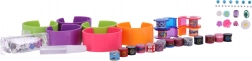 - barevné gumičky, šperkové ozdoby/kamínky, kroužky a disky pro vrstvení, pásky na náramky
