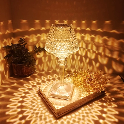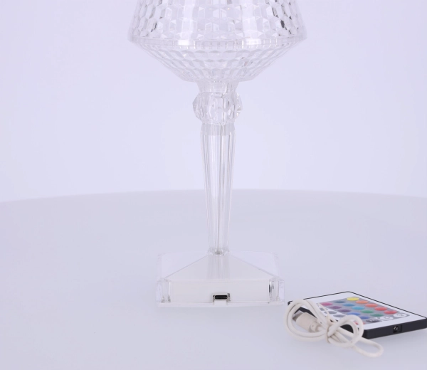 Tato designová křišťálová lampa spojuje efekt broušeného skla s moderní LED technologií. Díky 16bitovému RGB systému snadno přizpůsobíte barvu i náladu světla aktuální atmosféře – od teplého zklidnění až po živé barevné akcenty. Lehká konstrukce z polystyrenu napodobuje křišťálový vzhled a přitom je odolná a praktická.