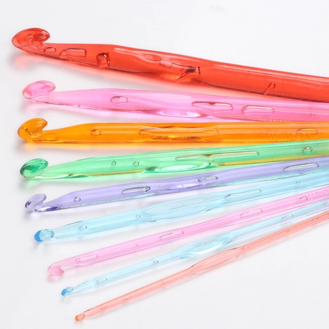 - Obsahuje 10 barevných háčků různých velikostí a 12 hliníkových háčků.