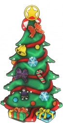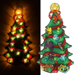 Tato závěsná LED dekorace s motivem zdobeného stromku je ideální pro sváteční výzdobu dětského pokoje i obýváku. Bateriové napájení (3× AAA) a snadná montáž na přísavku zajistí rychlé umístění bez vrtání a kabelů. Kryt baterií je uzavřen víčkem pro větší bezpečnost.