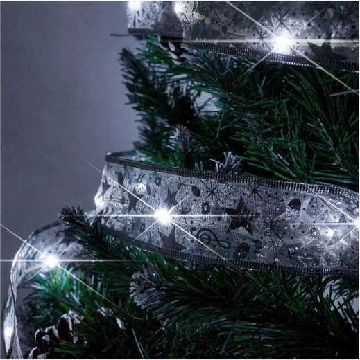 Tato elegantní stříbrná LED stuha je ideální pro vánoční výzdobu interiéru i chráněných exteriérů. Délka 10 m rovnoměrně rozložených diod zajistí jemné a efektní nasvícení. Díky napájení 3× AA bateriemi nepotřebujete přístup k elektřině, takže ji snadno umístíte na schodiště, okna nebo stůl.