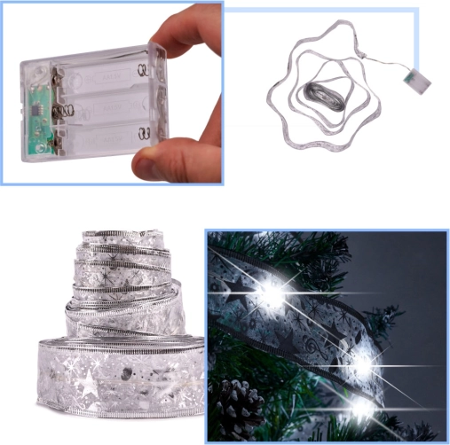 Vytvořte kouzelnou atmosféru s ozdobnou LED stuhou o délce 10 m se 100 LED ve studeně bílém odstínu. Díky bateriovému napájení ji umístíte kamkoli bez zásuvky, 8 světelných režimů navodí sváteční náladu a flexibilní provedení umožní snadné tvarování kolem stromku, věnců či dekorací.
