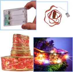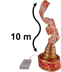 Tato vánoční stuha kombinuje dekorativní vzhled se světelným efektem. Zlato‑červený pás s integrovanými LED diodami vytváří jemné, barevné světlo po celé délce a skvěle se hodí na stromek, zábradlí, krbovou římsu i sváteční aranžmá. Bateriové napájení umožní použití i bez přístupu k zásuvce.