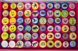 Každé z 60 razítek nabízí jedinečný design, od veselých zvířátek po zábavné emotikony, které děti milují.