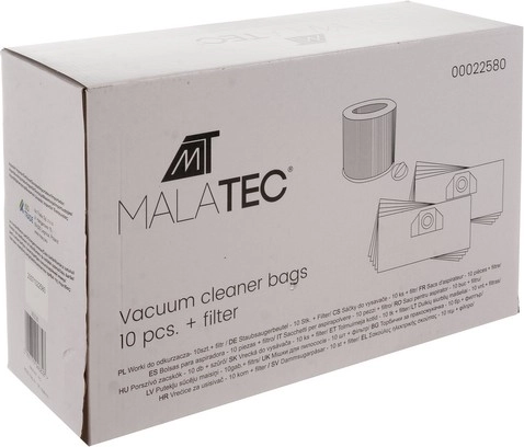 Sada sáčků a filtru do vysavače Malatec je nezbytným doplňkem pro každou domácnost. Obsahuje 10 dvouvrstvých papírových sáčků, které účinně sbírají a udržují prach a nečistoty, aby se zabránilo jejich návratu do vzduchu. Součástí je i filtr, který pomáhá zadržovat alergeny a znečisťující látky.