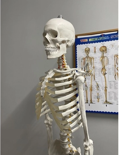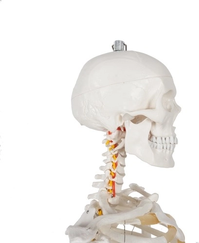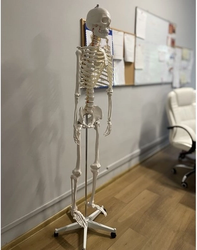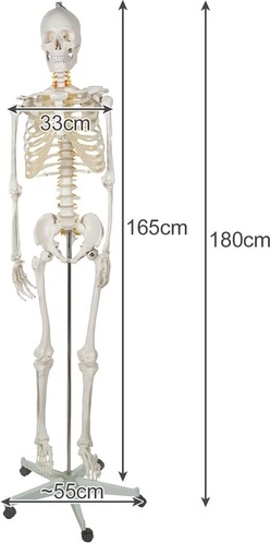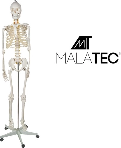 Anatomický model lidské kostry o velikosti 180 cm je ideální nástroj pro výuku a studium lidského těla. Vyroben z odolného plastu PVC, stojí stabilně na aluminiovém stojanu s kolečky, což usnadňuje jeho přemístění dle potřeby.