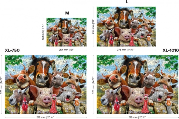 Dřevěné puzzle s motivem „Život na farmě“ přináší jedinečný zážitek z poskládání barevného obrazu plného veselých zvířátek. Díky preciznímu laserovému výřezu každého dílku do tloušťky 3–4 mm je skládání plynulé a zábavné, přičemž některé dílky mají podobu samostatných figurových tvarů. Oboustranný potisk umožní skládat podle obrázku i podle vzoru tvarů na rubu.