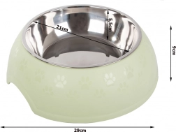 Kovová vložka snadno čistitelná a odolná vůči poškození. Vnější plast dodává misce estetický půvab a stabilitu. Kromě toho, že je miska funkční, působí také jako elegantní doplněk interiéru díky svým dekorativním vzorům.