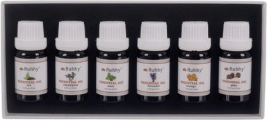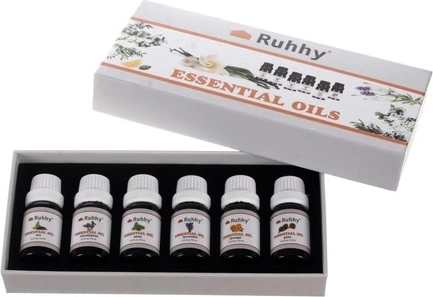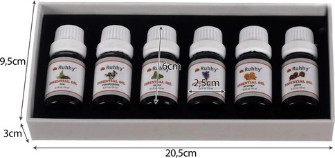 Sada esenciálních olejů Ruhhy vám přináší šest nádherných vůní, které přinesou novou úroveň klidu a pohody do vašeho života. Tyto oleje jsou perfektní pro použití v nádobách pro rozprašování, nádoby s vodou, nebo dokonce autoparfémech. Všechny lahvičky mají kapacitu 10 ml a jsou bezpečně uzavřeny.