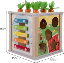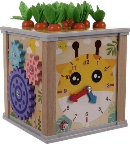 Dřevěná edukační kostka je skvělým nástrojem pro zábavu a učení. Každá strana kostky nabízí jinou aktivitu, která pomáhá vašemu dítěti rozvíjet jeho dovednosti: