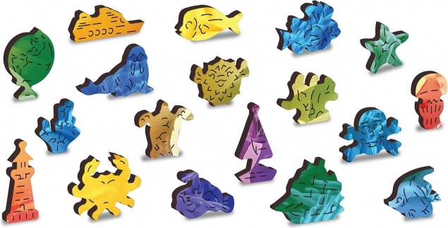 Mezi 400 dílky najdete 61 speciálních tvarů – ryby, hvězdice a další námořní motivy. Některé dílky mohou samostatně stát jako drobné figurky, což skládání dělá ještě zábavnějším.