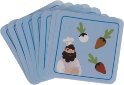 - dřevo (deska, kuličky, nástroje, figurka), filc (zelenina), karton (karty), PVC (košíčky)