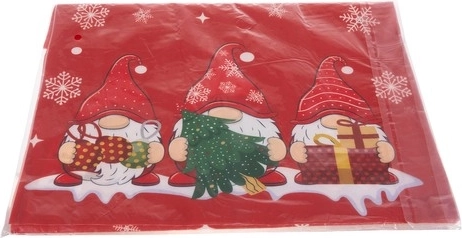 Červený podklad s bílými vločkami a hravými trpaslíky krásně doplní sváteční prostírání a vytvoří příjemnou atmosféru.