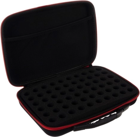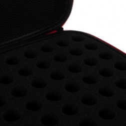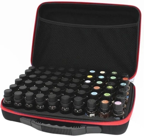 Pěnová vložka s přesnými výřezy drží bezpečně až 60 lahviček do 10 ml – ideální pro laky na nehty, esenciální oleje či další drobnosti.