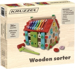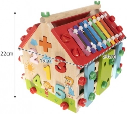 Dřevěný domeček pro děti je multifunkční a edukativní hračka navržená pro rozvoj motorických a kognitivních schopností dětí. Obsahuje různé aktivity, včetně xylofonu a tvarových vkládaček, které zajišťují skvělou zábavu.