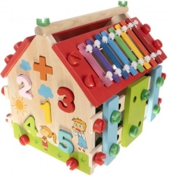 - Multifunkční domeček - každá strana obsahuje jinou aktivitu, jako jsou cymbály, tvarové vkládačky a další.
