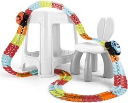 Tato flexibilní závodní dráha nabídne dětem hodiny zábavy. Díly můžete jednoduše spojovat, otáčet a přestavovat, takže si vždy vytvoříte novou a originální trať. Autíčko díky vedení v dráze zvládá smyčky, spirály, náklony i prudké zatáčky.