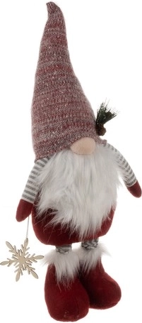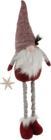 Roztomilý vánoční skřítek s teleskopickými nohami a modelovatelnou čepicí vnese do interiéru kouzelnou sváteční atmosféru. Díky nastavitelné výšce 50–82 cm ho snadno přizpůsobíte místu – pod stromeček, na komodu i do vstupní haly. Měkké textilie v červené, šedé a bílé, dlouhý kožešinový vous a detailní pletená čepice dělají z dekorace poutavý doplněk Vánoc.