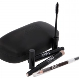 Řasenka pro zvýraznění řas, krémové stíny v tužce s ořezávátkem pro rychlý efekt a tužka na obočí se štětečkem pro dokonalý tvar.