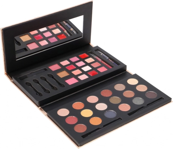 - Kompletní výbava v jednom: stíny, rtěnky, tvářenka, bronzer, tužky a aplikátor