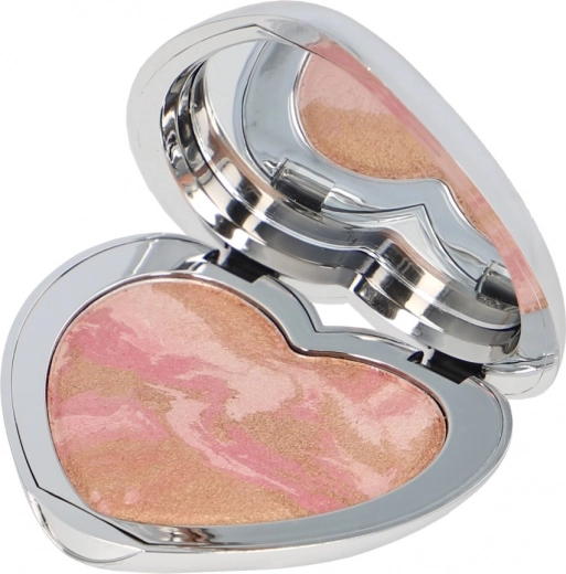 Jemně rozjasňující tvářenka v kovovém srdíčku dodá pleti svěží a přirozený nádech po celý den.