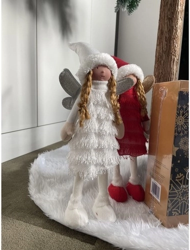 Elegantní vánoční figurka anděla/elfa ve sněhově bílém provedení vnese do interiéru kouzlo Vánoc. Má třpytivá křidélka, stabilní obuv s pevnou podešví a zimní outfit s rolákovými šaty a čepičkou s kožíškem. Skvěle se hodí na komodu, parapet, ke krbu i pod stromeček a krásně doplní sváteční dekor v moderním i klasickém stylu.