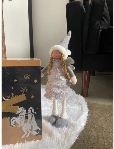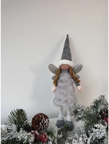 Tato elegantní vánoční figurka víly/anděla v kombinaci šedé, bílé a stříbrné přináší do domova útulnou zimní atmosféru. Třpytivá křídla a hebké textilie vytvářejí efekt kouzla a radosti, který je pro svátky typický.