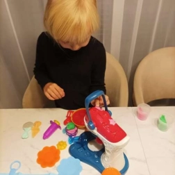 V balení najdete 5 kelímků modelíny v různých barvách, které lze mezi sebou mísit a vytvářet nové odstíny. Bohatá sada nástrojů (nožík, vidlička, lžíce, talířky, pohárky a různé nástavce) podpoří kreativní hru, rozvoj dovedností a zábavné hraní na kuchaře.