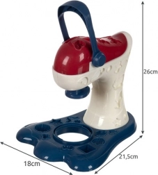 Velká mašinka ve tvaru mixéru s pákou lisuje a orazítkuje těsto do zábavných tvarů bez námahy – vhodné i pro menší děti.