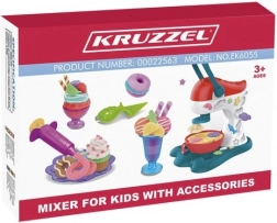 Tento barevný kreativní set s lisovací mašinkou ve tvaru mixéru umožňuje dětem jednoduše vytlačovat, razítkovat a modelovat nejrůznější dobroty. Páka mixéru se ovládá lehce, takže si poradí i menší děti. Součástí je také stříkačka pro vytlačování modelíny a miska s formičkami.