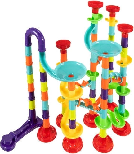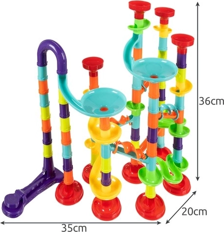 Postavte si vlastní 3D kuličkovou dráhu s až 113 díly a nechte 30 kuliček závodit po barevných tobogánech, trychtýřích a rampách. Díly se snadno a intuitivně spojují, takže děti mohou rychle měnit trasy a rozvíjet kreativitu, prostorové myšlení i jemnou motoriku.