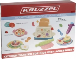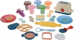 Tato všestranná sada s plastelínou je ideální pro malé kuchaře i tvořivé děti. Dětský toustovač realisticky napodobuje vzhled skutečného spotřebiče (bez zahřívání), takže mohou vznikat chutně vypadající „tousty“ a další dobroty z modelíny. Součástí je i stříkačka – vytlačovač pro tvorbu „těstovin“ a mnoho forem a nástrojů.