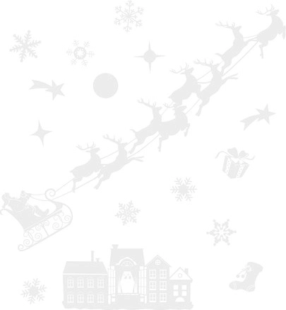 Vánoční dekorace z kvalitního PVC jsou vhodné na okna, zrcadla, obklady, skleněné dveře a další hladké povrchy. Instalace je velmi snadná: nalepte, vyhlaďte a vytlačte vzduchové bublinky. Vytvořte během chvilky sváteční výzdobu pro domácnost, kancelář i obchod.