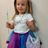 Kouzelná 9dílná sada promění každé dítě v opravdovou princeznu během chvilky. Pestrobarevná tutu sukýnka v tónech růžové, fialové a modré vyniká nadýchanými vrstvami tylu a pohodlným pasem. Elegantní tiára s růžovými kameny, třpytivý náhrdelník a náušnice podtrhnou slavnostní vzhled, zatímco kouzelná hůlka a roztomilá kabelka doladí celý outfit.