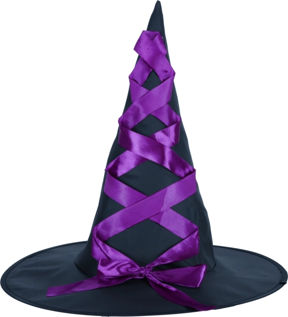 Černý a fialový klobouk s charakteristickou kříženou fialovou stuhou přidá kostýmu na autenticitě.