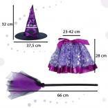 Oblékněte své dítě do této okouzlující sady čarodějnického kostýmu, která obsahuje dekorativní klobouk, fialovou sukni s elastickým pasem a unikátní koště. Tento kostým se skvěle hodí na školní karnevaly, tematické akce nebo jen tak na doma pro každodenní zábavu.