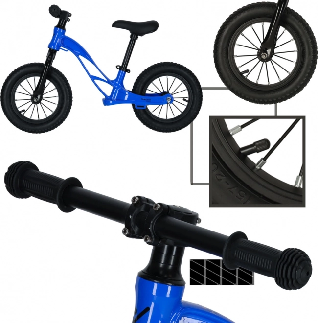 Nafukovací kola s dobrou trakcí tlumí nerovnosti a dodávají jistotu na různých površích. Odolný ocelový rám kombinuje pevnost s nízkou hmotností, takže se odrážedlo snadno přenáší i skladuje.