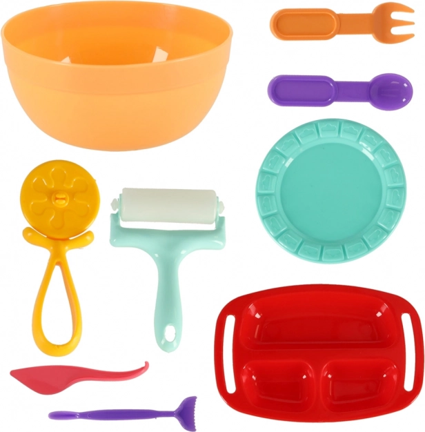 Sada zahrnuje talíř, misku, tác, válečky a příbory, které obohatí hrací zážitek a rozvíjí dětskou představivost.