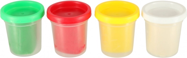 Obsahuje čtyři nádoby plastelíny v různých barvách, což činí tvorbu ještě zajímavější.