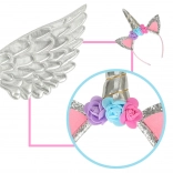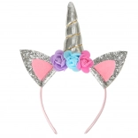 Tato čelenka přemění každé dítě na magického jednorožce díky elegantnímu stříbrnému rohu a dekorativním květinám.