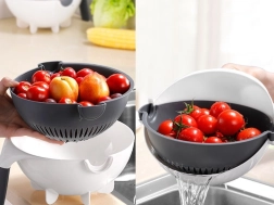 Otočný cedník zjednodušuje práci a umožňuje okamžité odvodnění přebytečné vody po krájení.