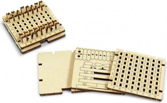 Tento promyšlený model přináší kapesní verzi klasických šachů v přírodním dřevě. Díky přesnému laserovému výřezu jednotlivých dílů je stavba plynulá, čistá a bez nutnosti lepidla či šroubků. Po dokončení získáte kompaktní šachovnici s figurkami, kterou snadno vezmete do kapsy nebo batohu – ideální pro cestování, pauzu v práci či rychlou partii s přáteli.