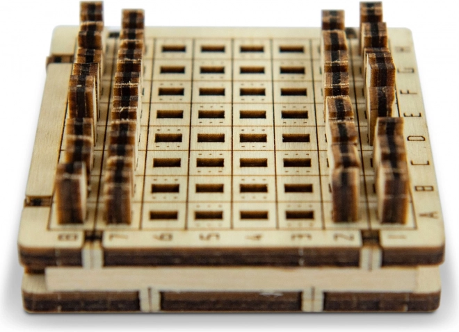 Laserem gravírované mřížky, písmena a čísla pro přehlednou hru. Přirozený vzhled dřeva dělá z modelu elegantní dekoraci.