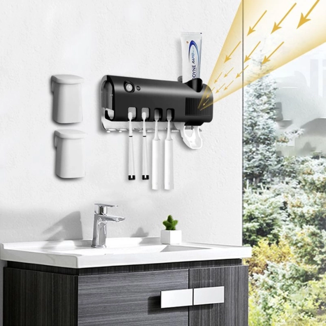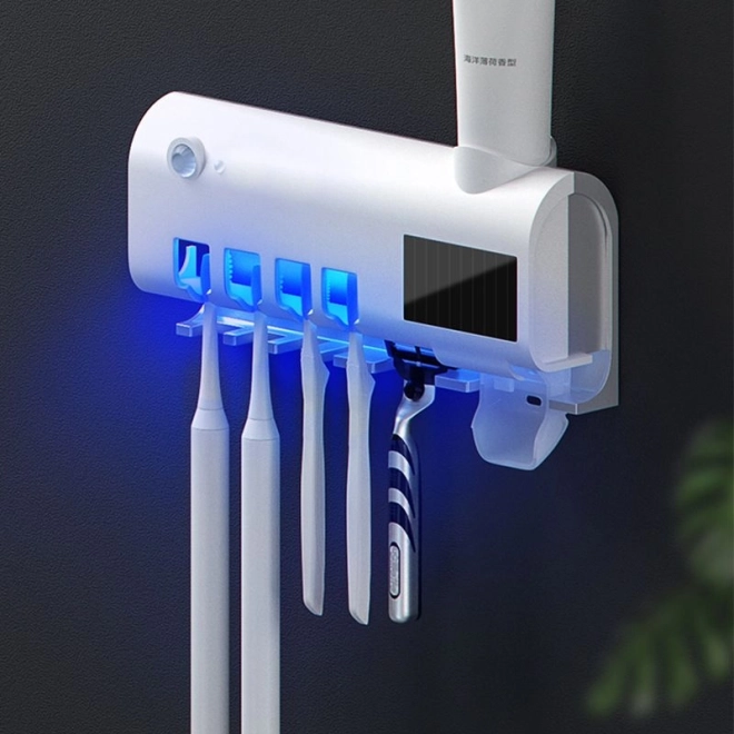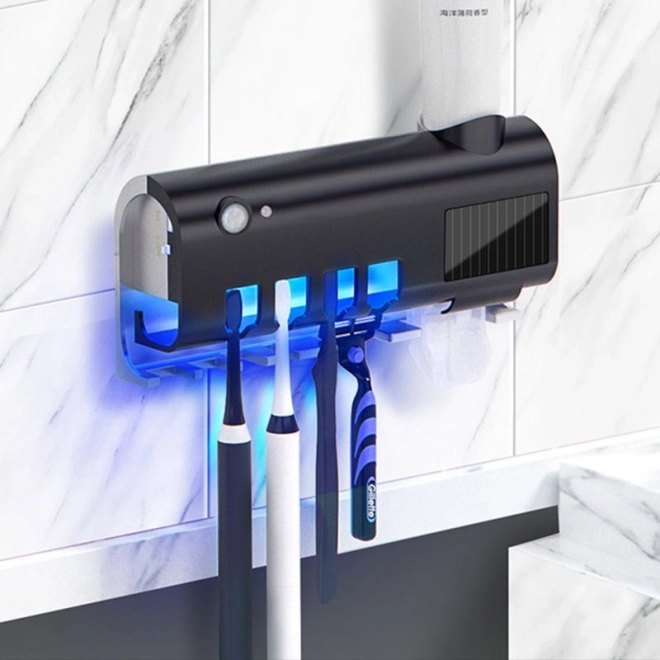 Při čištění zubů zubním kartáčkem má většina z nás tendenci zbytky pasty spláchnout a vrátit zpět, čímž na něm zanechává nejrůznější bakterie. Abychom tomu zabránili, přicházíme s naším UV držákem zubního kartáčku s dávkovačem pasty. Je to nepostradatelný doplněk do každé koupelny. UV sterilizátor zničí až 99,9 % bakterií, takže budete pokaždé používat čistý zubní kartáček.